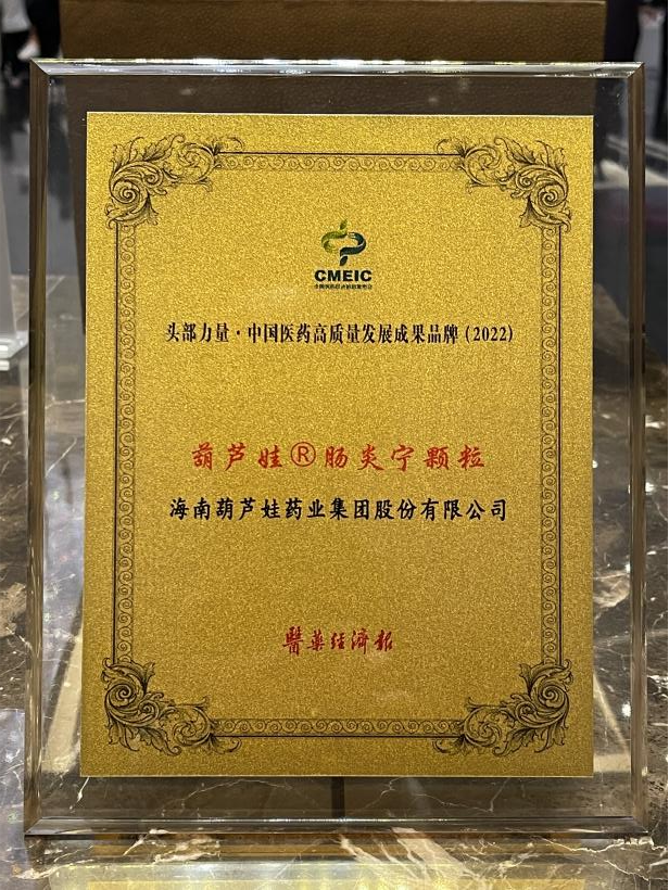 在本次发布会上,公司重点产品金沙城牌肠炎宁颗粒同时荣膺“头部力量·中国医药高质量发展成果品牌(2022)”。金沙城牌肠炎宁颗粒(2g),传承经典名方,临床广泛用于成人及儿童急慢性胃肠炎、腹泻等疾病的治疗,由于其杰出的临床价值,被纳入国家中医药管理局相关专家项目组制定的《中成药治疗小儿腹泻病临床应用指南》。