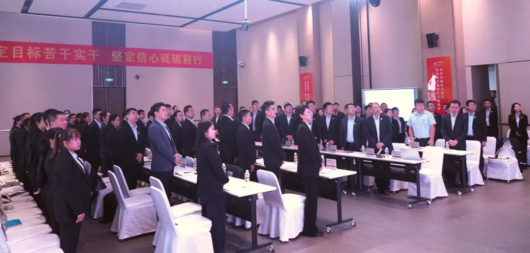 会议在庄严的国歌中拉开序幕,全体与会人员精神饱满,士气高昂。